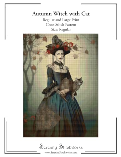 Autumn Witch with Cat Cross Stitch Pattern – Regular Size Edition: Regular and Large Print Cross Stitch Pattern