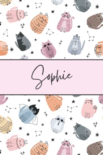 Sophie Cat Notebook: Cute Cat Notebook - Funny Crazy Cat Pattern For Cat Lovers - Pink Lined Journal - Sophie Name Diary