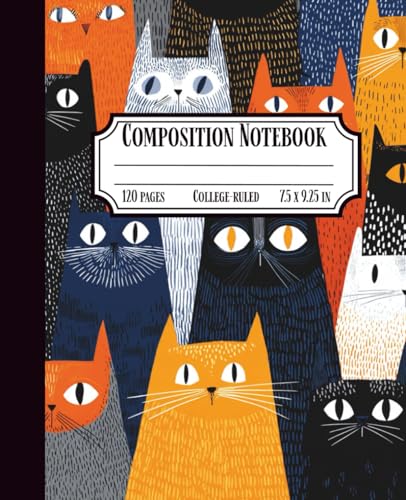Composition Notebook College Ruled: Cute Cat Pattern | Vintage Aesthetic Journal for School, Office or Personal Notes | 120 Pages | 7.5 x 9.25 in: Fun ... | Perfect for journaling, school or office.