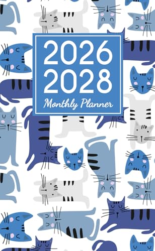 2026-2028 Monthly Planner: 3 Years Pocket Organizer from January 2026 to December 2028 with 36 Months of Scheduling including Federal Holidays in ... Playful Blue Cat Pattern for Purse or Bag