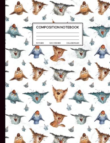 Cat Composition Notebook: Funny Watercolor Cat and Mouse Pattern Journal - College Ruled Lined Paper 8.5 x 11 inches 110 pages