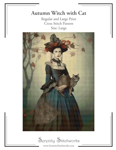 Autumn Witch with Cat Cross Stitch Pattern – Large Size Edition: Regular and Large Print Cross Stitch Pattern