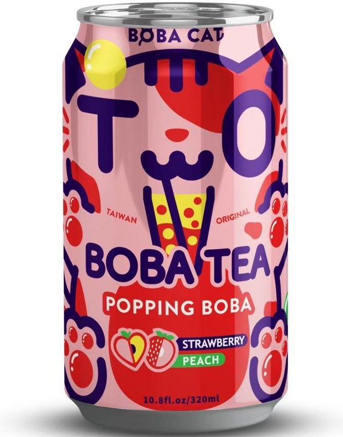 24 st Boba Cat Peach Strawberry - Popping Bubble/Boba Tea - Helt Brett 24x320 ml (Taiwan)