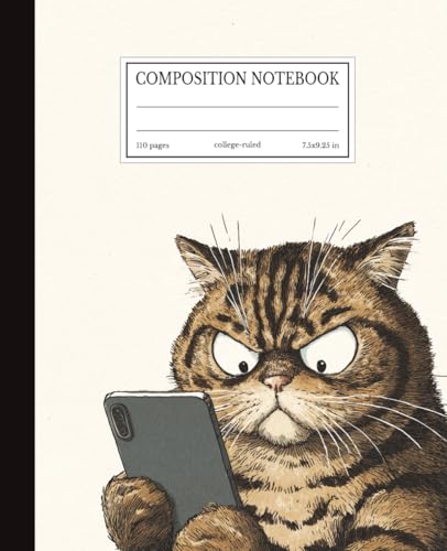 Grumpy Cat Composition Notebook Funny Angry Tabby with Phone | 7.5x9.25 in | 110 Pages | College Ruled Lines