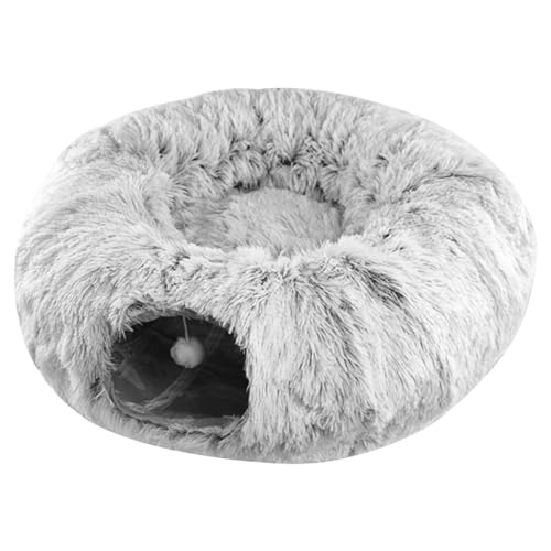 Cat Tunnel Bed 2 i 1 Plush Cat Donut Bed Tunnel, 33,5x10,3 tum fällbar, avtagbar och tvättbar katttunnel leksak för liten medelstor katt, valp, kaniner sängmattor