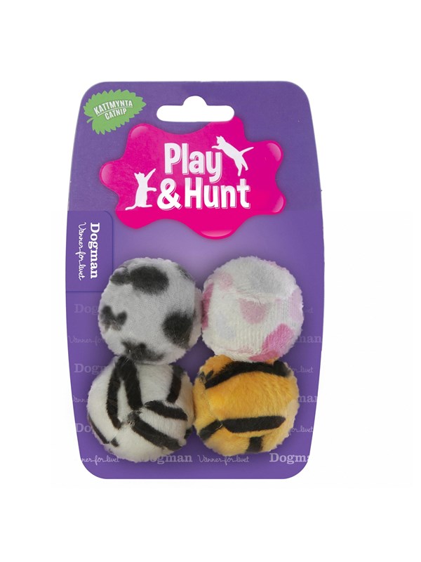 Dogman Cat Toy Plush Covered Ball 4cm (4-Pack Assorted)