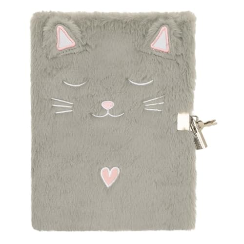 Draeger Paris - Jounal Intime - Tema: Cat Plush - 14 x 5 x 19 cm - grå - med hänglås - kokong, hemlighet, integritet, flicka - presentidé för vänner, familj, flickvän, födelsedag