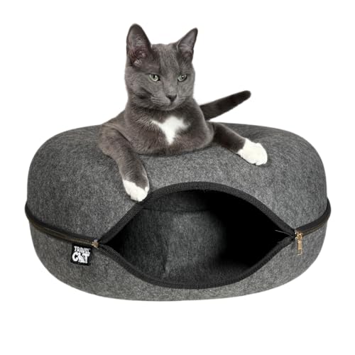 Resekatt: munk! Katter gömställe grotta – premium kattgrotta, kattklösare och husdjurssäng – 53 cm diameter – hållbar filtkonstruktion med gulddragkedja – bekväm och mysig – hopfällbar