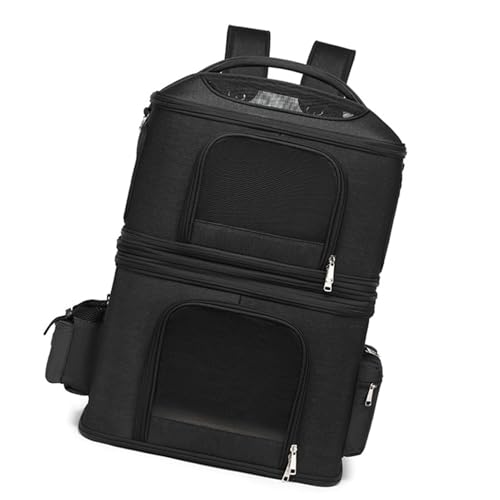 BAFOVY Double Layer Cat Ryggsäck, Löstagbar Ryggsäck för 2 Katter med Andningsbart Mesh -tyg, för Resevandring, Handhållen, Axel (Svart)