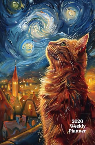 2026 Weekly Planner: Pocket sized Van Gogh Starry Starry Cat Organiser. Perfect novelty gift for Van Gogh and cat lovers. Fits in purse or backpack.