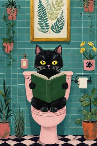 Funny Black Cat Notebook - 6x9'' (80 Pages) | Hilarious Secret Journal for Kids & Adults | Cute Cat Reading on Pink Toilet with Plants | Perfect for Writing, Drawing & Laughs | Unique Gift for Cat Lovers, Writers & Stationery Fans!