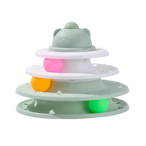 Cat Roller Ball Toy, 3 spår Plast Cat Turntable Toy, Kitten Tower Toy med 3 färgglada bollar, för flera innekatter