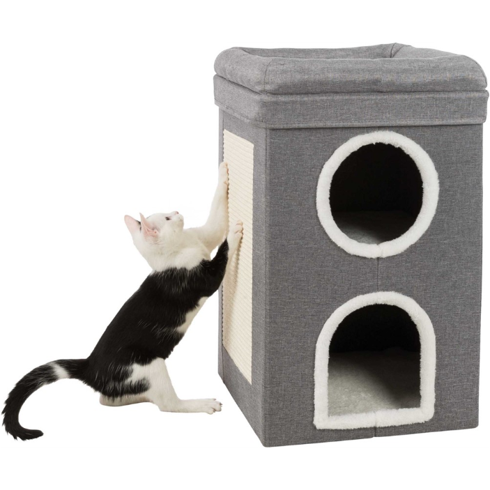 Trixie Mexia 2-Story Cat Condo Tower, Top Platform with Removable Bed, Removable Cushions 15.75 x 15.75 x 29 inches