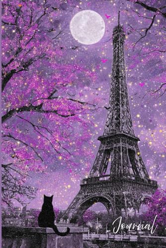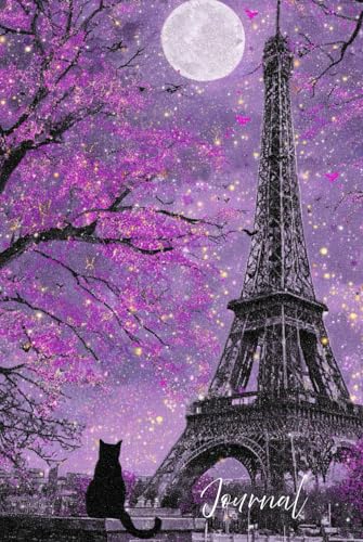 Midnight in Paris Journal: A Magical Notebook Featuring a Realistic Eiffel Tower Scene with Full Moon, Stars, Bats, Cherry Tree, Black Cat, and ... Writing, Dreaming, and Nighttime Reflections