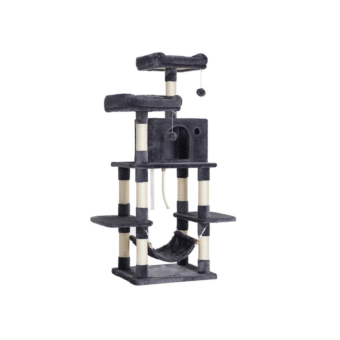 176 cm Cat Tree Tower med mysiga mattor & Cave – Grå