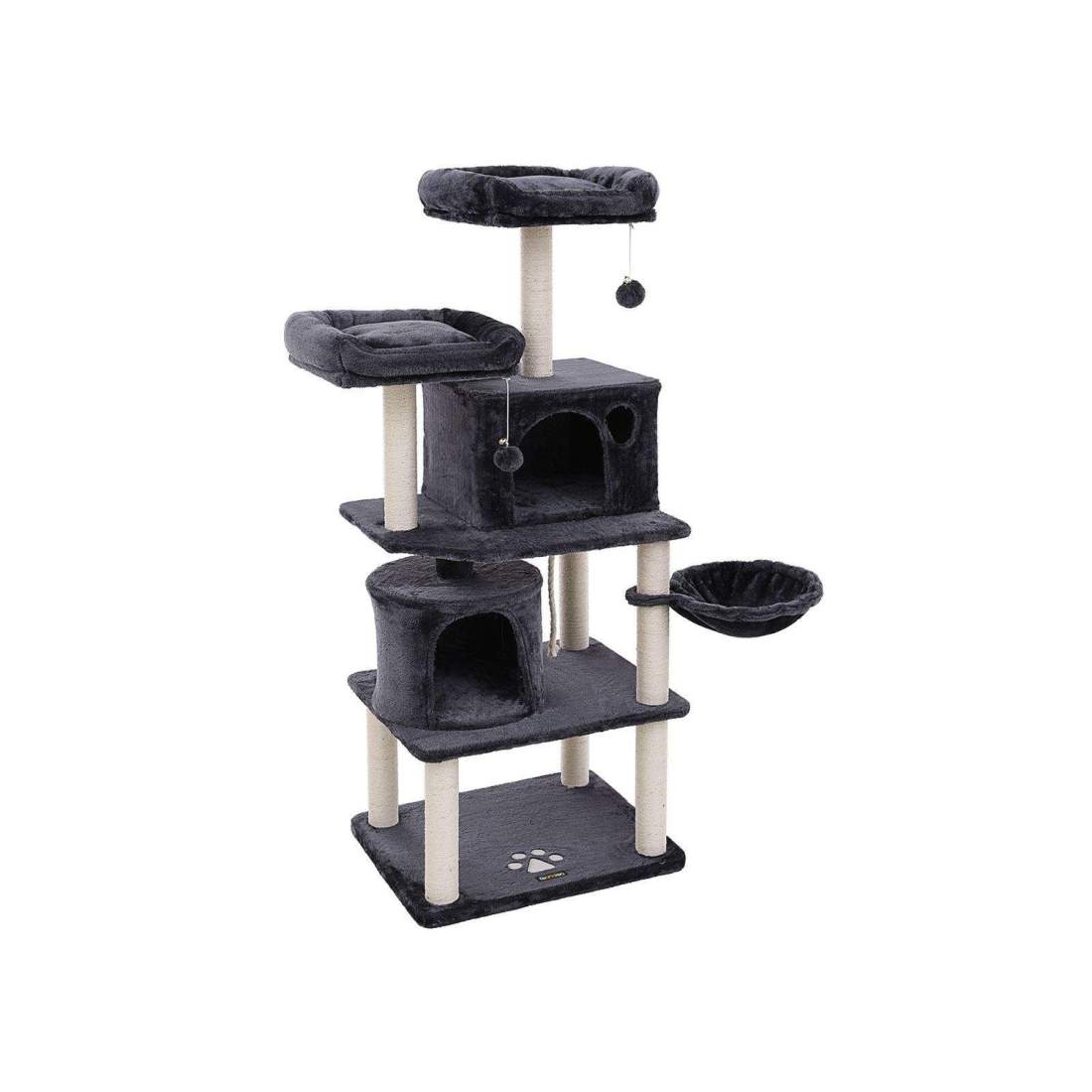 Feandrea Large Cat Tree, 75" Tall Cat Tower, Multi-Level, med 2 kennlar, 2 korgar, 5 skrapstolpar, självvårdande, abborre, hängmatta, mörkgrå PCT183G02