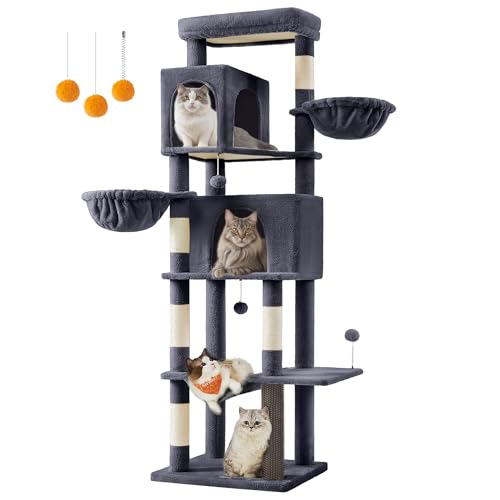 VOUNOT Large Cat Tree 168 cm Cat Tower with Scratching Posts, Multi-Level Cat Climbing Frame with 2 Condos, 3 Perches and Dangling Balls, Cat Activity Centre for Indoor, Grey