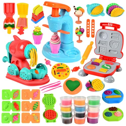 JurciCat Tillbehörsset För Modellera För Barn 51 Delar DIY Verktyg För Modellera Burger Machine Noodle Machine Glass Machine Clay Tillbehör Knådande Leksak Present För 3+ år Flicka & Pojke