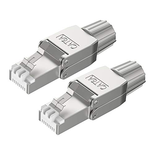 VCELINK RJ45 CAT6A-kontakter Verktyg Gratis skärmad verktygslös modulär nätverksplugg för installationskabel 2-pack