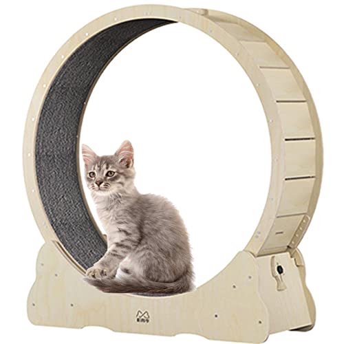 BLANKX Cat Wheel Exerciser för inomhuskatter, Cat Running Wheel, Cat löpbandshjul med utbytbara greppkuddar, låsmekanism, TPE tysta och ljudlösa rullar,XL-Woodcolor