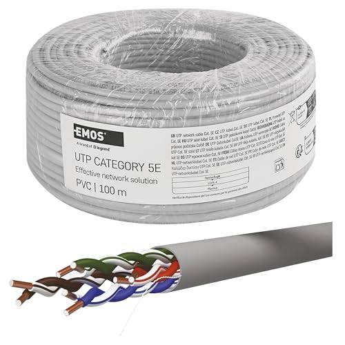 EMOS – UTP nätverkskabel CAT 5e, 100 m, PVC – CAT5e patchkabel UTP – CCA-tråd – Gigabit LAN-kabel – oskärmad Ethernet-kabel – för inomhusbruk