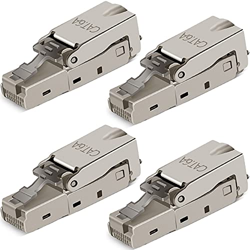 Greluma 4 st Verktygsfri RJ-45 Cat7 Cat6/6A Fältanslutning Modulär kontakt, Cat7 Cat6A RJ45 skärmad för 22-24AWG installationskabel