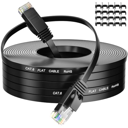 Nätverkskabel 20m Utomhus Cat6 Slim Platt Svart Ethernet Cable Extremt Långa Patchkabel Rj45 Hög Hastighet Internetkabel 1Gbps 250MHz Lan Kabel 20 Meter
