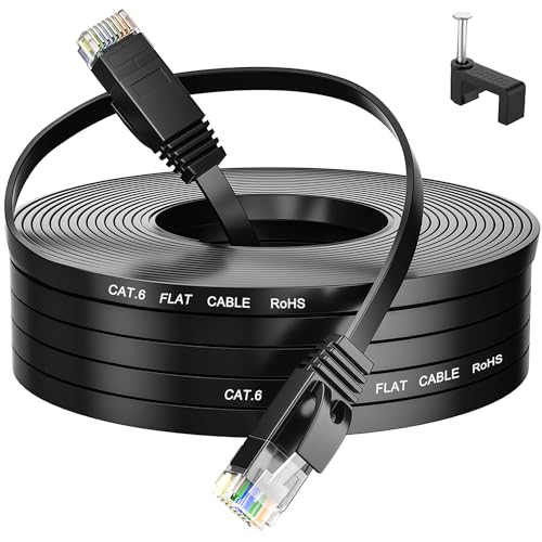 Nätverkskabel 50m, Utomhus Platt Ethernet Kabel 50m Höghastighets LAN Kabel, Cat6 Extra Lång LAN Kabel, RJ45 Internet Kabel, Snabbare än Cat5e, Billigare än Cat7 Och Cat8(Vita, 50 Gratis Kabelklämmor)