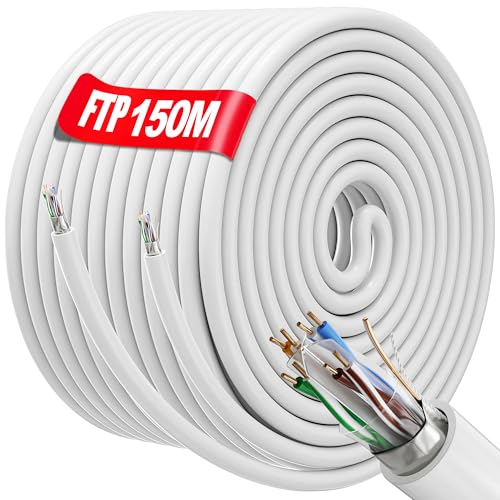 Nätverkskabel 150m Utomhus Cat6 Ethernet Kabel Vit Runda Lan Kabel FTP Skärmad Extremt Långa 23AWG Patchkabel Rj45 Hög Hastighet Internetkabel 1Gbps 250MHz Lan Kabel 150 Meter