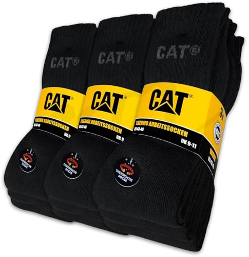 CAT CATERPILLAR THERMO SOCKS 9 par arbetsstrumpor termiska strumpor vinterstrumpor storlek 39–50, 9 par svarta, 39/42 EU