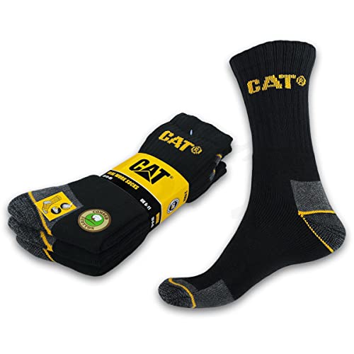 CAT CATERPILLAR 4 par långa arbetsstrumpor för män för säkerhetsskor - förstärkt på häl och tå - Svamp bomullsgarn i utmärkt kvalitet (Svart, 3942)