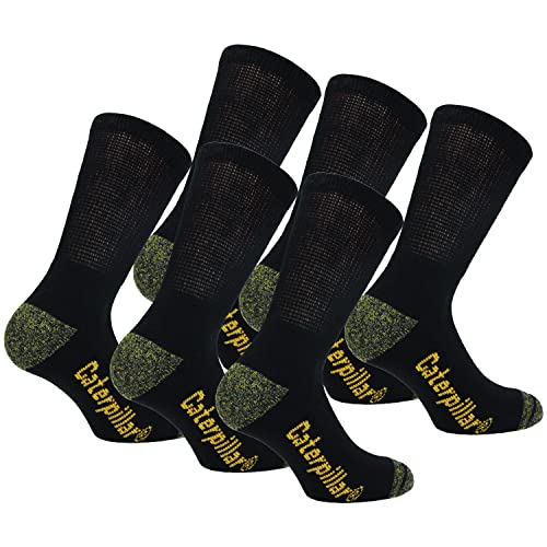 Caterpillar Real Work Socks 6 par arbetsstrumpor manförstärkt på häl och tå bomullsfrotté (Svart, 4145)