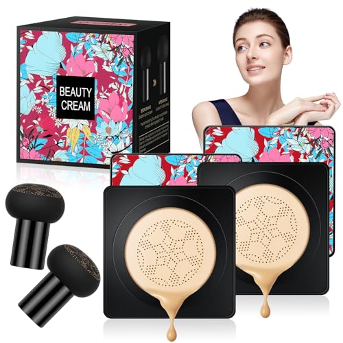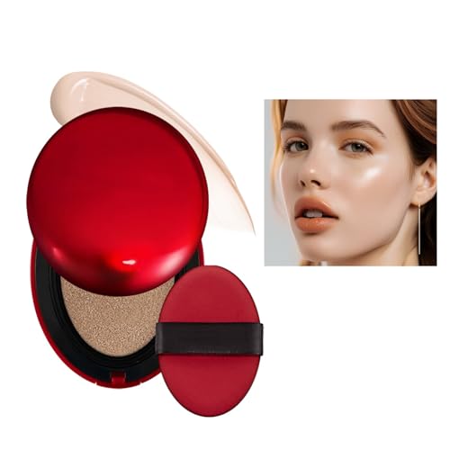 Mushroom Head Air Cushion CC Cream - Fuktgivande & Oljekontrollerande Foundation Med Svampmakeup Svamp - Långvarig Täckning (Naturlig, Röd Fodral-2st)