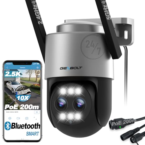 GENBOLT 2.5K PTZ WiFi Övervakningskamera för Utomhusbruk med PoE,Dubbellins CCTV Hemövervakningskamera med 10X Hybridzoom,IP-Kamera med Färgnattläge 4MP,Automatisk Spårning(2,4 &5GHz)