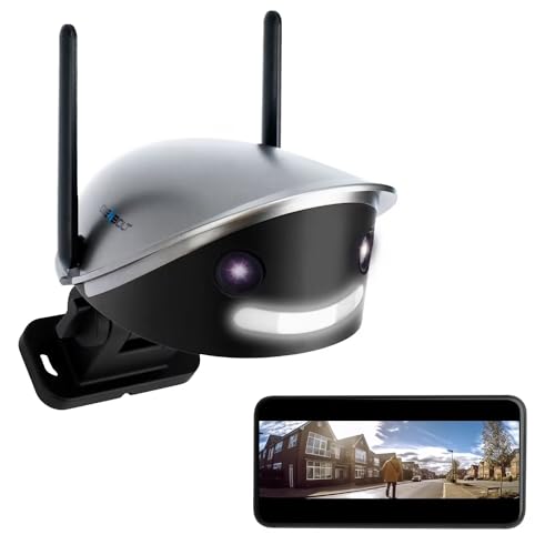 GENBOLT Övervakningskamera Utomhus 2.4&5GHz WIFI med PoE, Hemövervakningskamera med Dubbla Linser, IP-kamera CCTV med Färg Natt, Automatisk Spårning av Humanoiddetektering, Panorering, Tilt, Spotlight