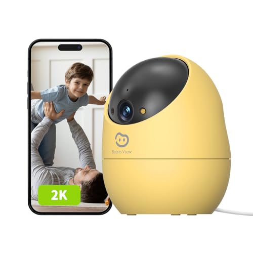Beans View 2K (3MP) Inomhus Säkerhetskamera, Smart Färg Nattseende, Wi-Fi Husdjurs- / Hund- / Kattkamera Med Mänsklig Rörelsedetektering Och Spårning, 360° Vy Babymonitor, 2,4 GHz PTZ CCTV (D210 Gul)