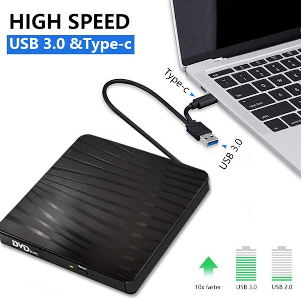 Extern DVD-enhet, Bärbar USB3.0 Typ C CD DVD RW-enhet, Disk Drive Player-brännare, för Bärbar Stationär PC, för Windows för Linux för OS X