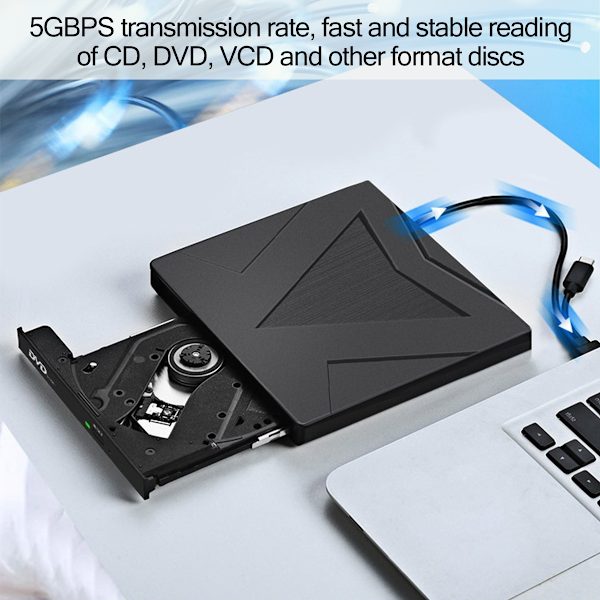 Extern optisk enhet, CD-spelare med dubbelt gränssnitt av typ C och USB 3.0, CD-brännare, DVD-brännare, DVD-spelare