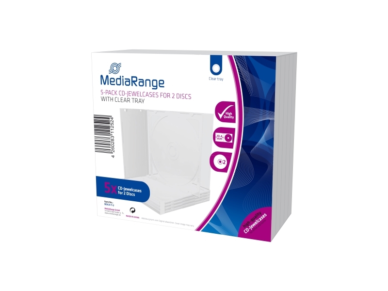 Mediarange Cajas Cd Doble, 10 Mm, Transparente, 5 Unidades, Plastfodral, 2 Diskar, Transparent, Plast, 120 Mm, Rohs