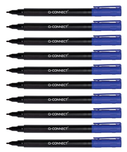 Q-Connect CD DVD BD märkpenna tjocklek: 0,6 mm/blå/10 stycken – 10-pack/vattentät, för skrivning på glas, plast, metall, porslin, folie/alkoholbaserad/giftfri