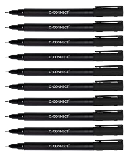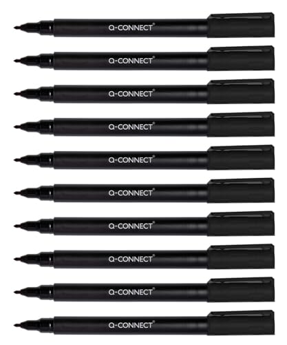 Q-Connect CD DVD BD märkpenna tjocklek: 0,4 mm/svart/10 stycken – 10-pack/vattentät, för skrivning på glas, plast, metall, porslin, folie/alkoholbaserad/giftfri
