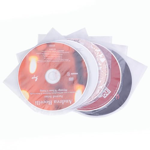 FLLAGG20 | CD-fodral, 100 st, transparent plast | Passar CD, DVD, Blu-ray Fickor | Med stängningsflik, skyddar mot damm och repor | Praktisk förvaring av skivor Cd Dvd Sleeves