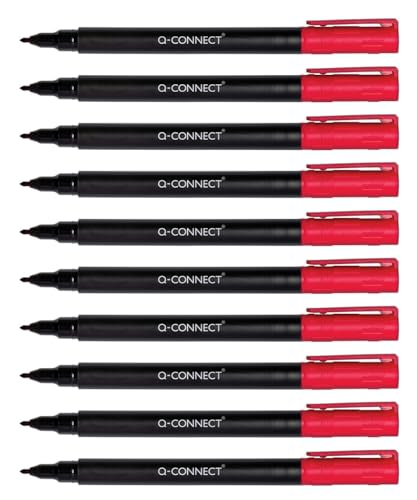 Q-Connect CD DVD BD märkpenna tjocklek: 0,6 mm/röd/10 stycken – 10-pack/vattentät, för skrivning på glas, plast, metall, porslin, folie/alkoholbaserad/giftfri