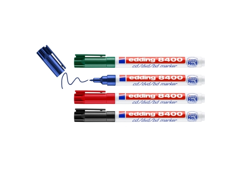 Edding 8400 Cd/Dvd/Bd, Svart, Blå, Grön, Röd, Rundad Spets, Plast, 0,5 Mm, 1 Mm, Vattenbaserat Bläck
