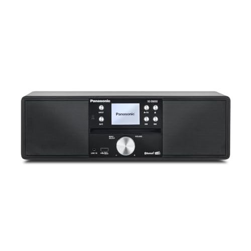 Panasonic SC-DM202EG-K kompakt mikro-Hi-Fi-stereosystem med CD, DAB+/FM-radio, USB och Bluetooth, 24 W högtalare, fjärrkontroll, 2,4 tum TFT LCD-skärm, EQ-inställningar, svart.