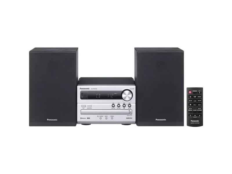 Panasonic SC-PM704EG-S kompakt Micro HiFi stereosystem med CD, DAB+/FM-radio, USB och Bluetooth, 80 W högtalare, baskontroll, silver