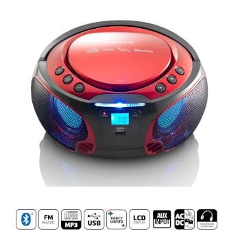 Lenco Bärbar FM-radio CD / MP3 / USB / Bluetooth-spelare® med LED-belysning Röd