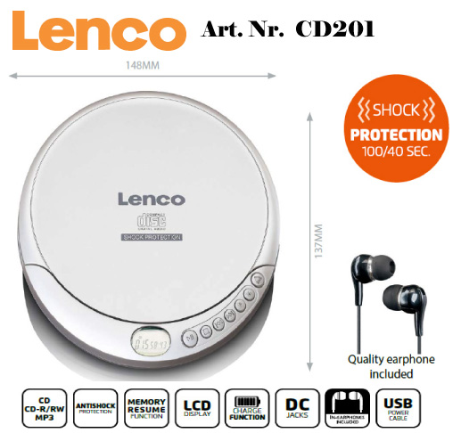 Lenco Bärbar CD MP3-spelare anti-chock Silver