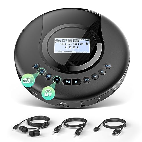 Arafuna Bärbar CD-spelare med DAB+/FM-radio, CD-spelare Bluetooth med ljudbokfunktion, Discman för bil, Antishock, integrerat batteri 2000 mAh