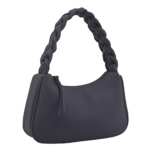Emperia Braided Top Handle Shoulder Bag For Women, Trendy Designer Small Hobo Tote Handbag_Black
